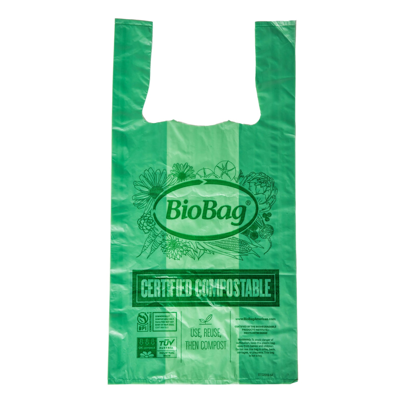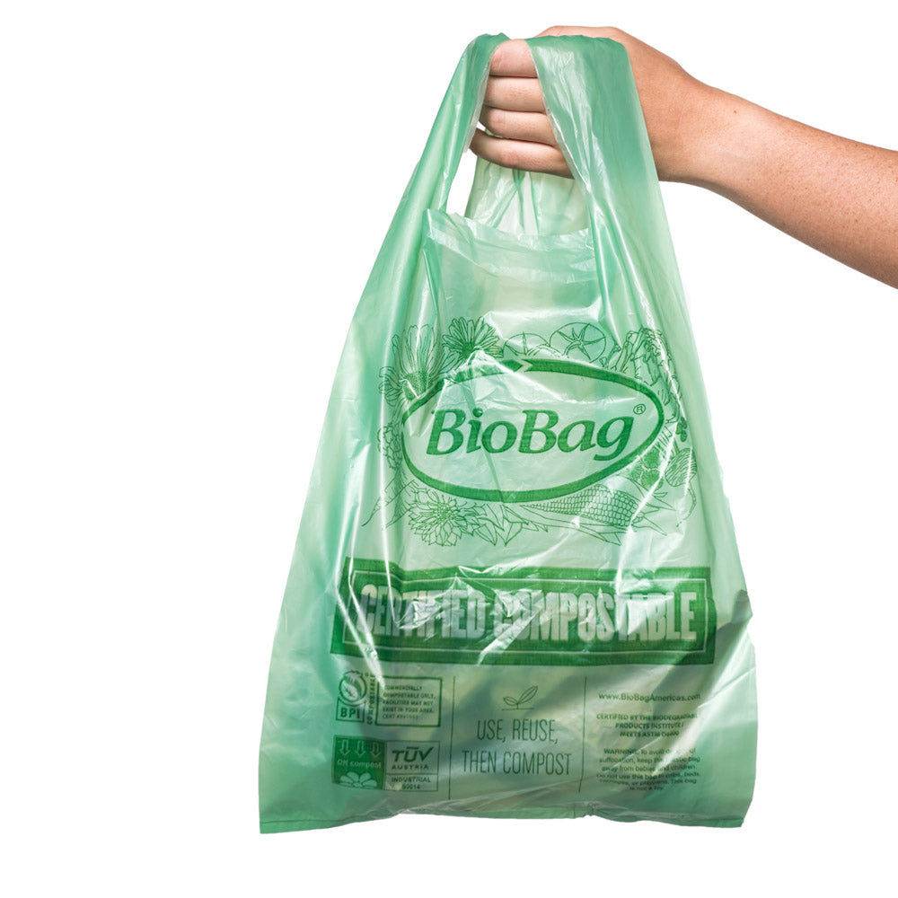 Our compostable bags are an ideal choice if they are destined for a composting facility. They exhibit 100% biodegradation within 180 days under commercial composting conditions in compliance with the specifications established in the ASTM D6400 standard. They can be composted at home** but don't break down at the same rate.